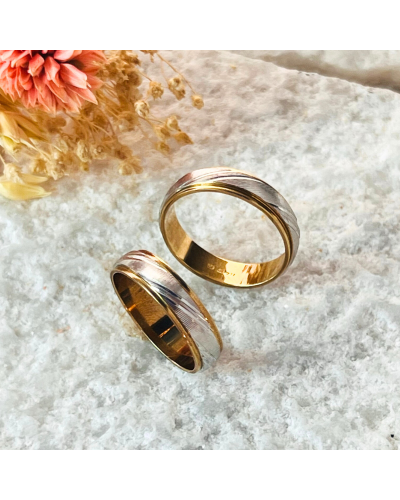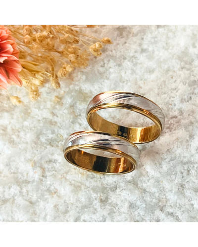 Aliança Bicolor de Ouro 9K Amarelo 4mm