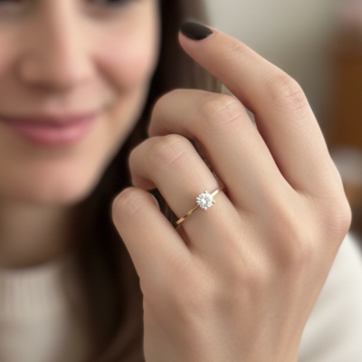 At its center, a carefully cut zirconia stone reflects light with beautiful brilliance, highlighted by the refined simplicity of the 19K yellow gold band. Solitaire rings are traditionally associated with meaningful moments such as engagement proposals, promise rings, or romantic declarations.