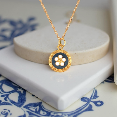 Portuguese filigree medal with enamel detail, featuring the traditional caramujo motif — a symbol of unity and harmony — masterfully crafted in 19K gold.