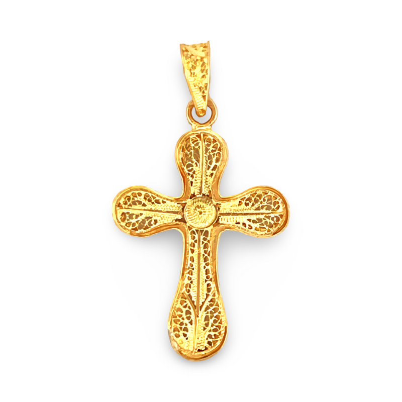 25mm cross crafted in Portuguese filigree, with rounded edges and intricate details that showcase the mastery of traditional goldsmithing.
