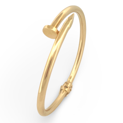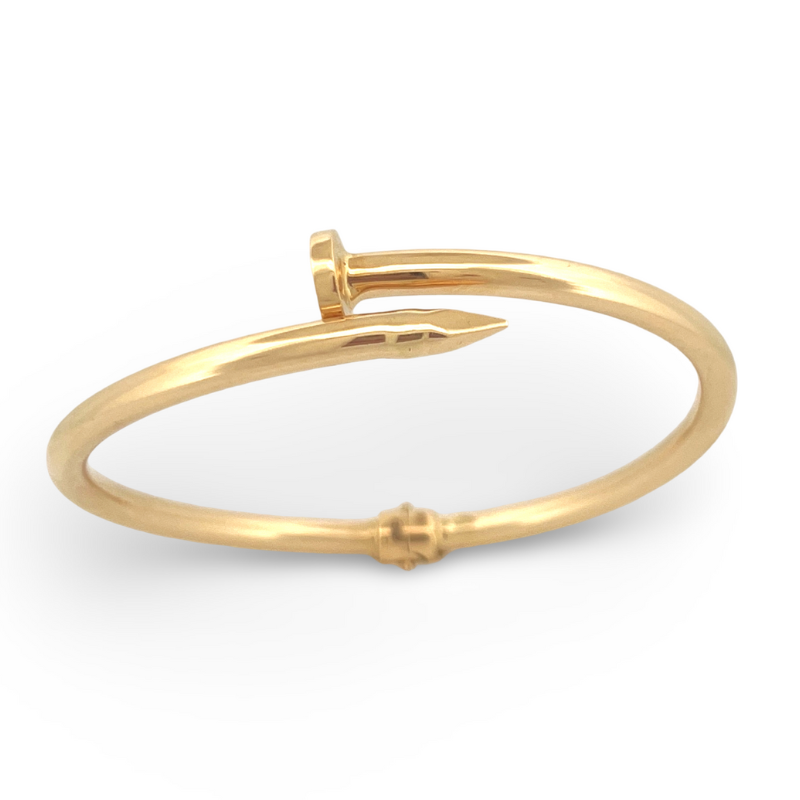 The Prego Icon Bracelet in 18K Yellow Gold is a powerful symbol of attitude and style. Inspired by the curved form of a nail, its design embodies strength, resilience, and refined urban aesthetics. Crafted in polished 18K gold, it's perfect for those who appreciate jewelry with a strong identity and timeless sophistication. A bold piece that speaks for itself.