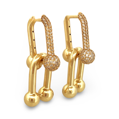 The Galaxy Earrings blend modern curves with a touch of luxury. Measuring 30 mm, they are crafted in 18K yellow gold and accented with finely set zirconia for a continuous shimmer. Their sculptural silhouette adds personality and sophistication — perfect for those who love to stand out with refined style. A lightweight, versatile piece that elevates any occasion.