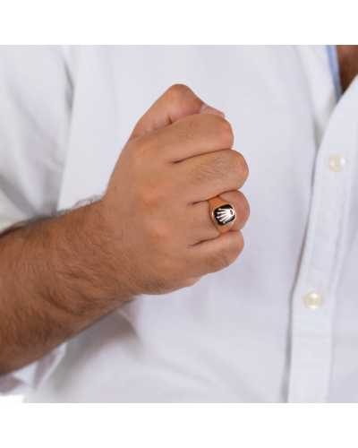 A bold ring featuring a five-point crown in 19K yellow gold over a black enamel background — a symbol of power, style, and timeless sophistication.