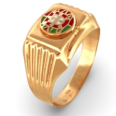 A bold ring crafted in 19K Portuguese gold, featuring the national crest in green, red, and white enamel — the colors of the Portuguese flag, symbolizing identity, heritage, and national pride.