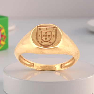 A 19K Portuguese gold signet ring with the national crest engraved — tradition, heritage, and elegance in one timeless piece.