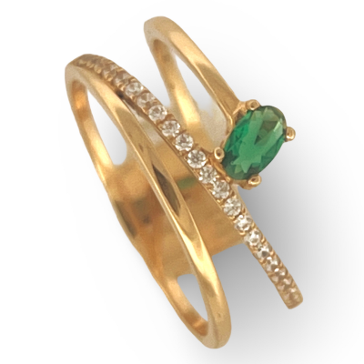 The Aura Green Ring in 19K Yellow Gold is the epitome of refined beauty and graceful design. Crafted in noble metal, it showcases a flowing, modern structure with an oval-cut green stone at the center—symbolizing renewal and balance. A side band adorned with shimmering zirconias adds a soft, elegant glow. Ideal for those who seek jewelry with personality, delicacy, and exquisite detail.