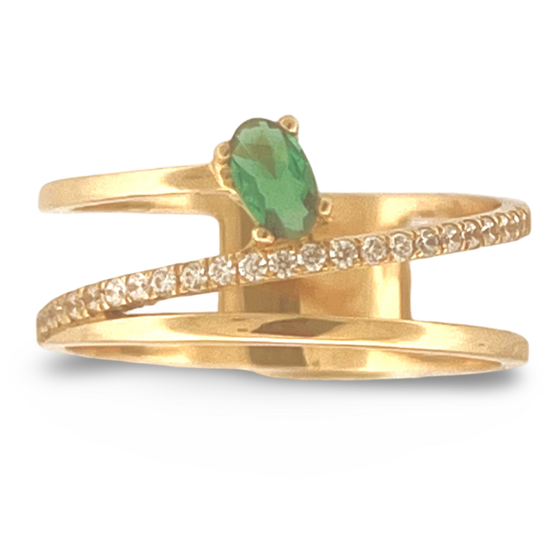 Aura Green Ring in 19K Yellow Gold with Side Sparkle