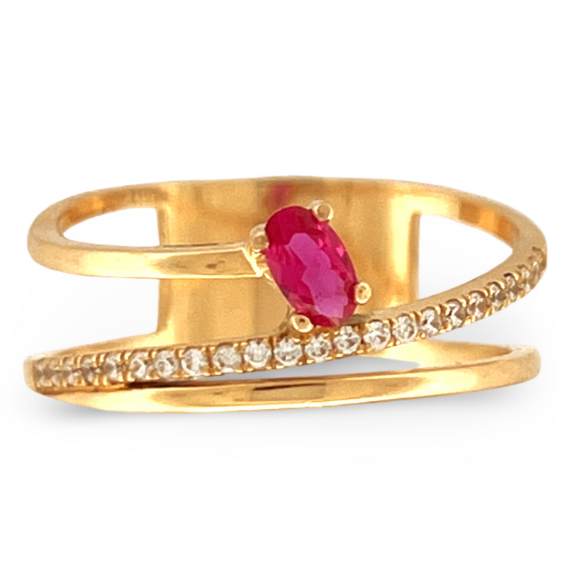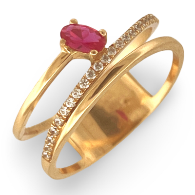A touch of passion in noble gold. Ring with a vibrant red stone and polished 19K gold finish.