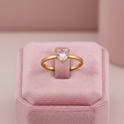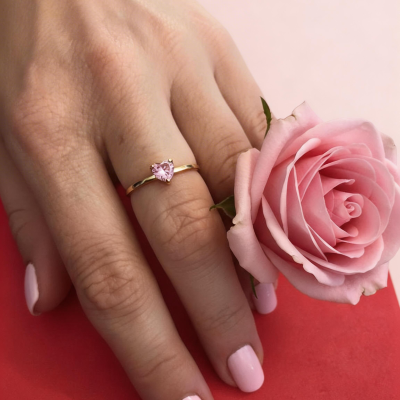 Pink Heart Solitaire Ring in 19K Yellow Gold