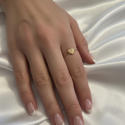 Delicate and meaningful, this 19K yellow gold ring features a heart adorned with sparkling zirconia stones, symbolizing love, commitment, and promises that last over time.
