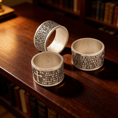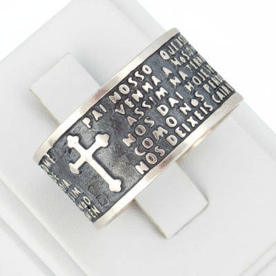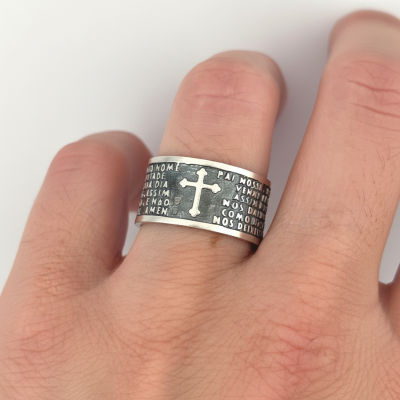 Sterling silver 925 ring engraved with the Lord’s Prayer, a symbolic jewel that combines faith, protection, and elegance.