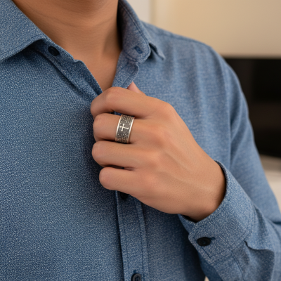 This sterling silver 925 ring features the Lord’s Prayer carefully engraved around the band, creating a piece with deep spiritual meaning. Its strong yet elegant design makes it ideal for everyday wear, serving as a symbol of faith, protection, and devotion.