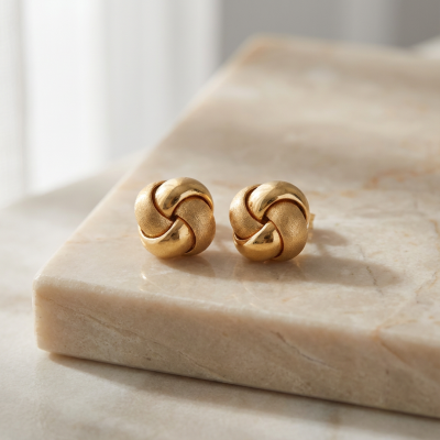10mm knot-shaped earrings crafted in 19K yellow gold with satin and polished finishes. A sustainable, timeless jewel designed for everyday elegance.
