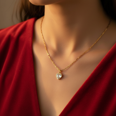 The Heart Pendant with White Stone in 19K Yellow Gold is a timeless piece that symbolizes love, light, and refinement. The heart design paired with the brilliance of the white stone creates a delicate and elegant jewel, perfect for everyday wear or special moments.
