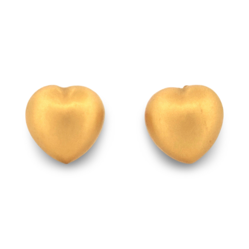 Heart Earrings in 19K Yellow Gold with Satin Finish – Sustainable Jewelry