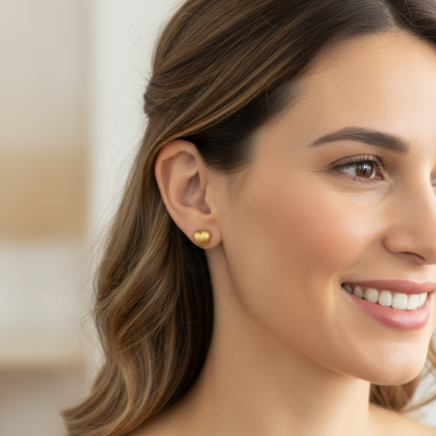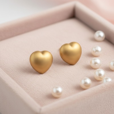 The Heart Earrings in 19K Yellow Gold with Satin Finish, available at Lusijoia, are a delicate jewel full of symbolism. Featuring a minimalist heart design, they express romance and elegance, making them ideal for everyday wear or as a meaningful gift.