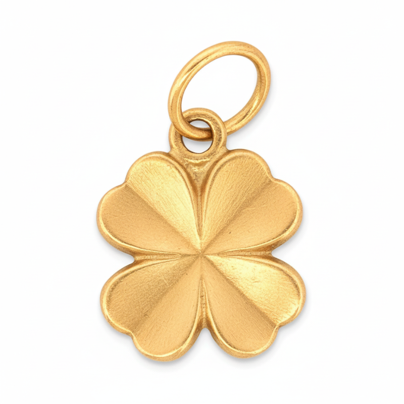 Clover-shaped medal in 19K yellow gold, a sustainable jewel symbolizing luck, protection, and timeless elegance.