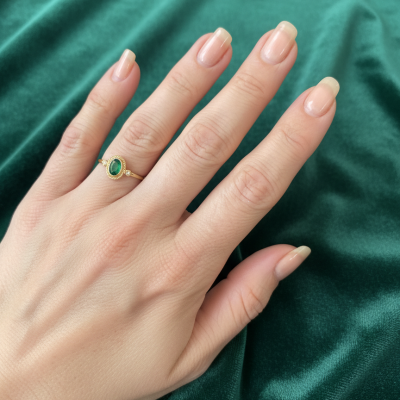 The gemstone creates a harmonious contrast with the warm glow of gold, resulting in a classic and elegant piece.