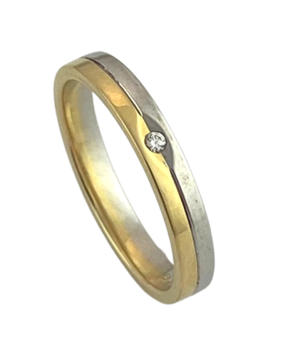 Aliança Solitário Bicolor de Ouro19.2K Amarelo 3mm Zircónia