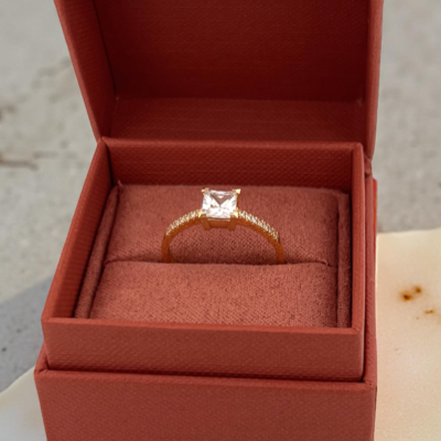 Diseñado para durar tanto como el amor que representa. El Anillo Solitario Eternelle fusiona brillo, elegancia y resistencia en una pieza inolvidable. Su protagonista es una circonita central de corte cuadrado, moderna y refinada, acompañada de pequeñas piedras engastadas a lo largo del aro que añaden un destello sutil y continuo.