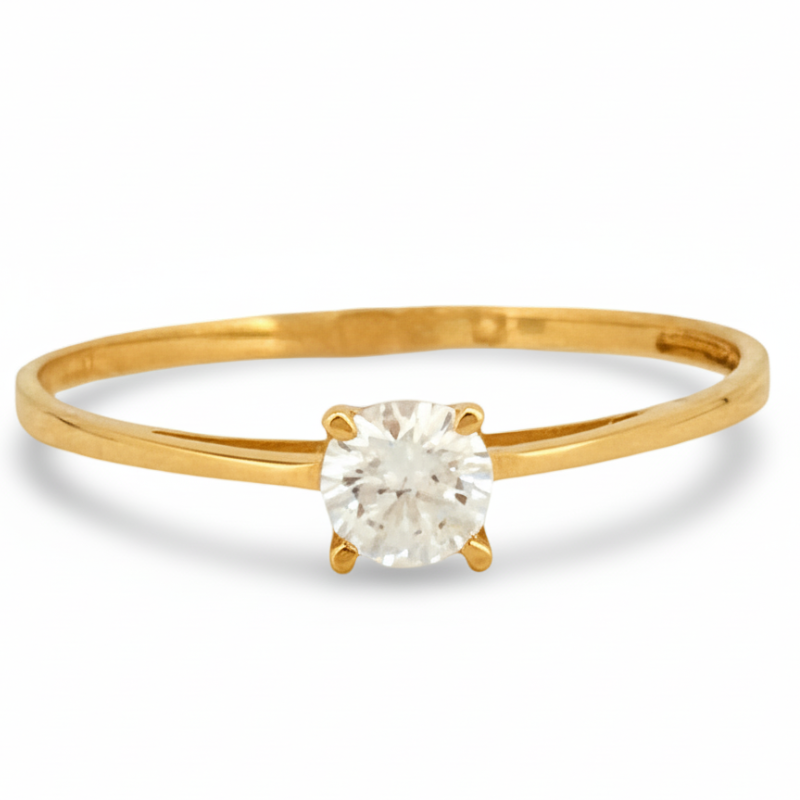 Anillo solitario en oro amarillo 19K con circonita brillante, símbolo atemporal de amor, compromiso y momentos especiales.