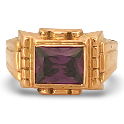 Anillo Prisma en Oro Amarillo de 19K con Piedra Violeta Rectangular Tallada