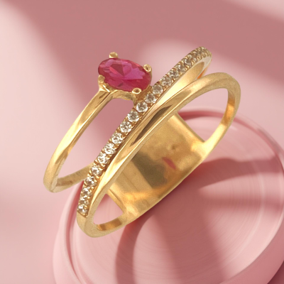Un toque de pasión en oro noble. Anillo con piedra roja vibrante y acabado pulido en oro 19K.
