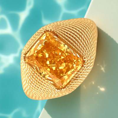 El Anillo Cleopatra es una joya que transmite poder y elegancia. Elaborado en oro amarillo de 19 quilates, cuenta con una piedra central amarilla facetada que refleja la luz con intensidad y estilo.