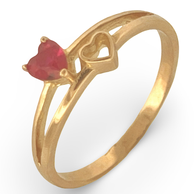 Anillo Dúo Corazones en Oro Amarillo de 19 Quilates con Piedra Rosa