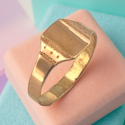 Anillo de bebé en oro amarillo de 19 quilates, con espacio perfecto para grabar la inicial del nombre — un recuerdo ideal para celebrar el nacimiento.