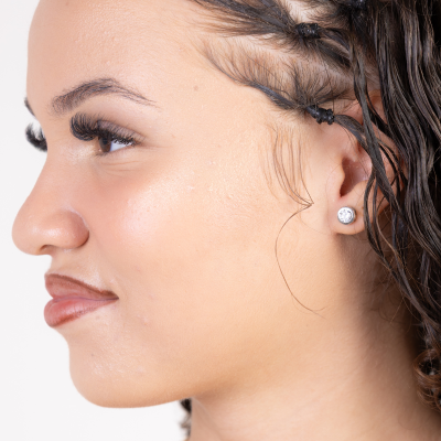 Pendientes Bezel Solitario en Oro Blanco de 9K con Circonita