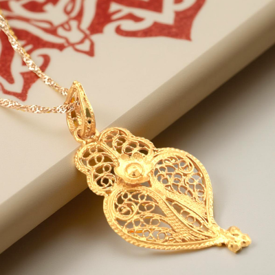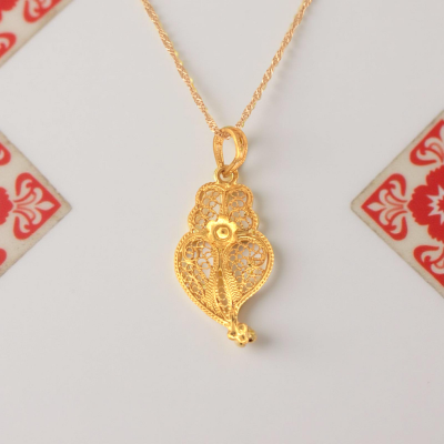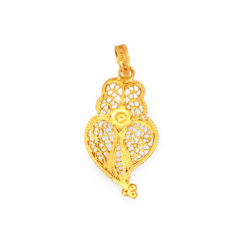 Delicado colgante de filigrana en oro amarillo de 19K con la icónica forma del Corazón de Viana, símbolo de amor, devoción y tradición portuguesa.