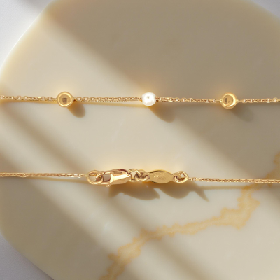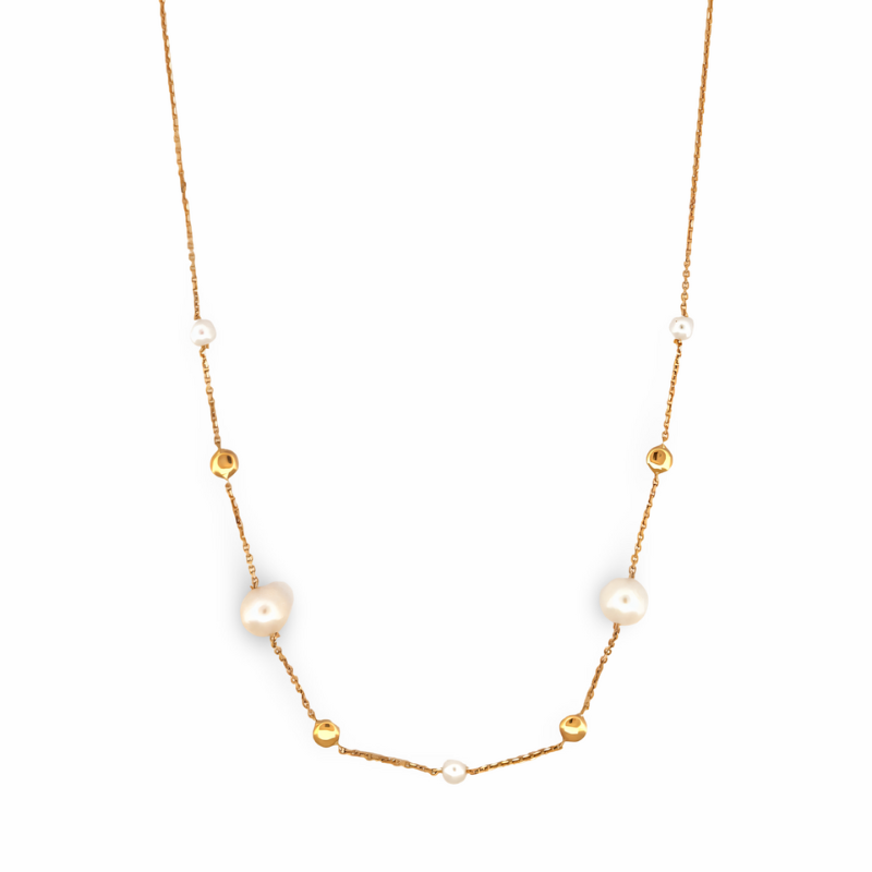 Un collar sofisticado que combina la delicadeza de las perlas con la elegancia de los botones en oro 19K amarillo.
