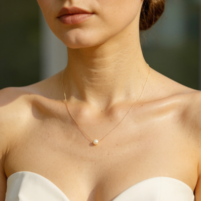 Collar Perla Solitaria 5mm en Oro 19K Amarillo – Joya de Novia