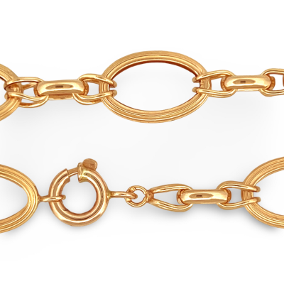 El Collar de Eslabones Ovalados Clásicos en Oro Amarillo de 19K une la tradición con la modernidad en un diseño único. Cada eslabón ovalado está cuidadosamente pulido, creando un efecto visual suave y equilibrado, mientras se mantiene una presencia destacada gracias a la resistencia y el brillo excepcional del oro de 19 quilates.