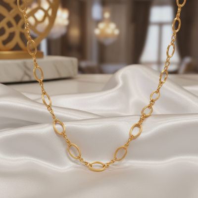 Un collar moderno y sofisticado, con eslabones ovalados y un acabado impecable en oro de 19K. Elegante, versátil y perfecto para quienes valoran el diseño contemporáneo y la fortaleza del metal noble.