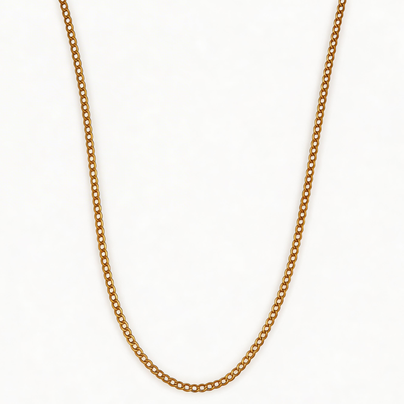 Cadena en oro amarillo de 19K con diseño barbela laminada, elegante y versátil. Una joya nueva ideal para un estilo unisex moderno.