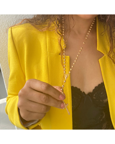 rosario religioso con medalla de Nuestra Señora de Fátima con cruz de Cristo en oro amarillo de 19k.