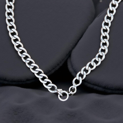 Collar de plata 925 con eslabones huecos y voluminosos estilo barbela. Una pieza elegante, moderna y cómoda para el uso diario o eventos especiales.