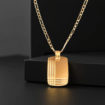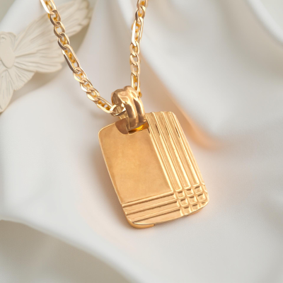 Elaborada en oro amarillo 19k, esta medalla presenta un diseño elegante y versátil, con superficie lisa para grabar nombres, iniciales, fechas o símbolos especiales. Una joya única para inmortalizar momentos y sentimientos, uniendo significado y sofisticación.