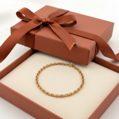 Esta pulsera está elaborada en oro macizo de 19K (19,2 quilates), con eslabones redondeados y robustos que transmiten fuerza, tradición y elegancia refinada.
