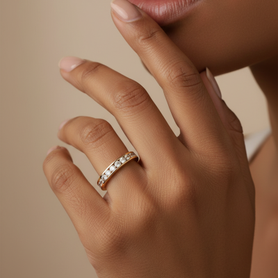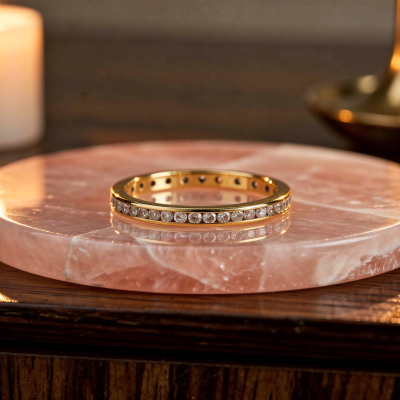 El Anillo Memoria con Piedras Blancas en Oro Amarillo de 19K es una pieza clásica que simboliza continuidad, elegancia y momentos especiales. Las piedras blancas engastadas en todo el aro aportan un brillo uniforme y sofisticado, característico de los anillos memoria — usados para celebrar fechas importantes, logros o recuerdos personales.