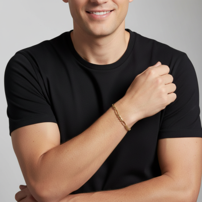 Esta pulsera tradicional de eslabones 3x1, elaborada en oro amarillo macizo de 19K, es una pieza clásica que trasciende modas. Su diseño atemporal se adapta a cualquier estilo y ocasión, ideal tanto para el uso diario como para momentos especiales.