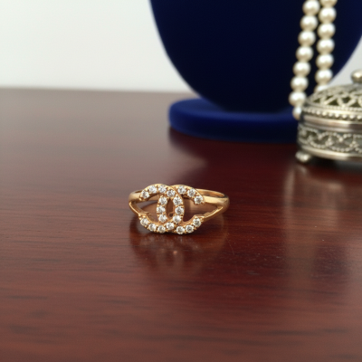 Anillo en oro amarillo 9K con circonitas blancas, un diseño icónico y sofisticado presentado como joya sostenible.