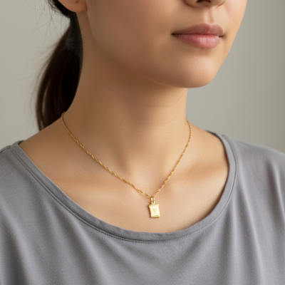 El acabado texturizado contrasta suavemente con el brillo cálido del oro 19K, creando una estética elegante y versátil. Ideal para el uso diario o como un regalo significativo, esta medalla celebra un nombre, a una persona especial o una historia única.