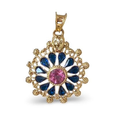 Medalla Floral con Piedras en Oro Amarillo 19K – Joya Sostenible