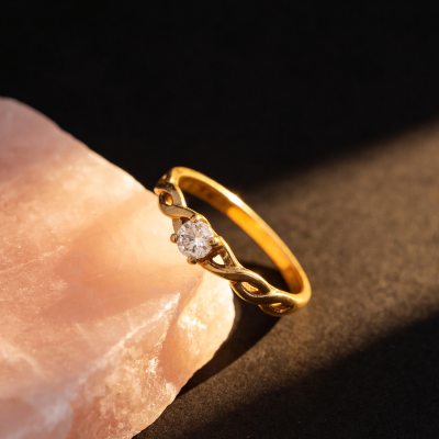 Anillo Solitario Trenzado en Oro Amarillo 19K – Joya Sostenible
