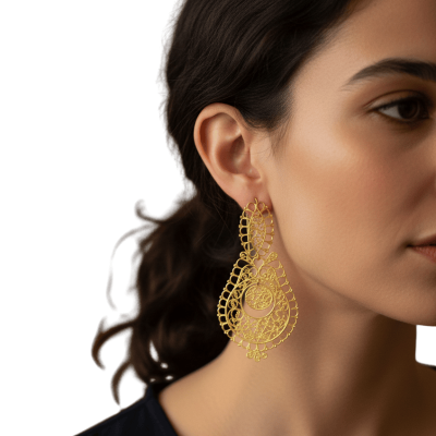 Pendientes Rainha reinventados en plata oro 925, trabajo 100% manual y fabricados en Portugal
