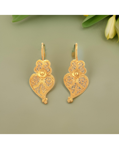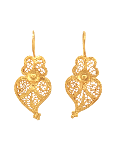 Pendientes Llama Corazón de Viana Filigrana en filigrana de oro amarillo de 19k, trabajo 100% manual y fabricado en Portugal