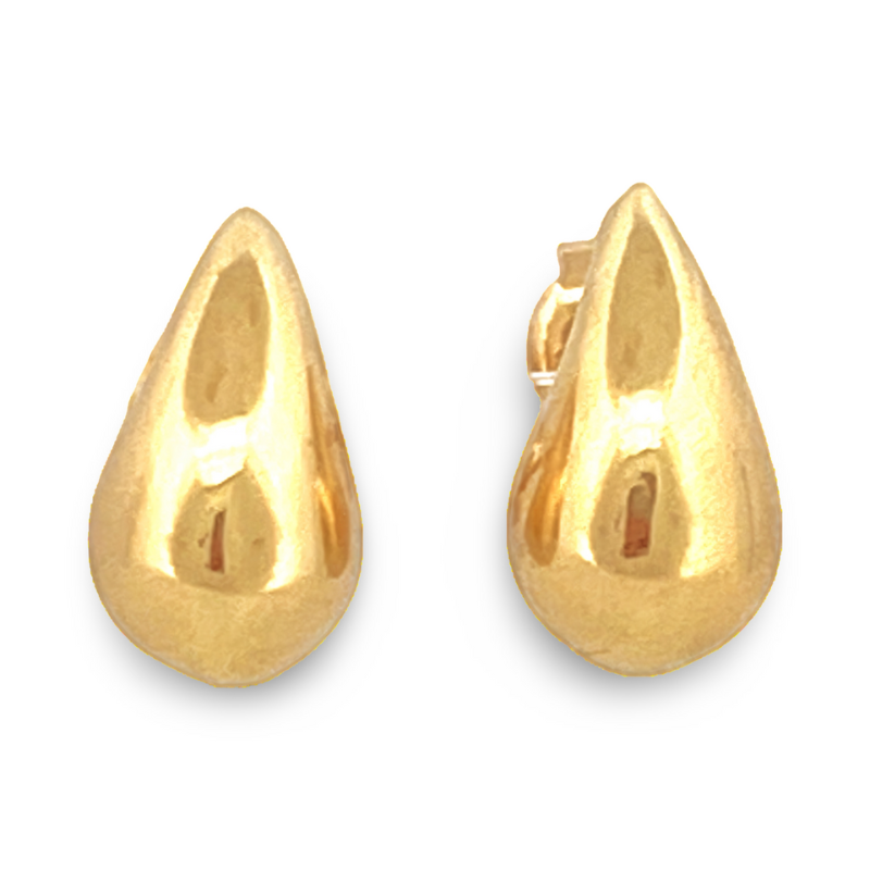 Pendientes en forma de gota lisa en oro amarillo de 18 quilates. Un símbolo de elegancia esencial y atemporal.